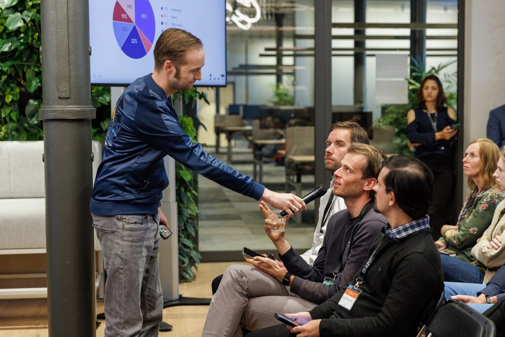 - Decentralized data leadership, by Daniëlle Bourgondië (PGGM Investments). Daniëlle led a lively discussion on what it takes for business domains to take ownership of their data and drive AI strategies. As she aptly put it: “This is not optimization. It’s reimagination.”